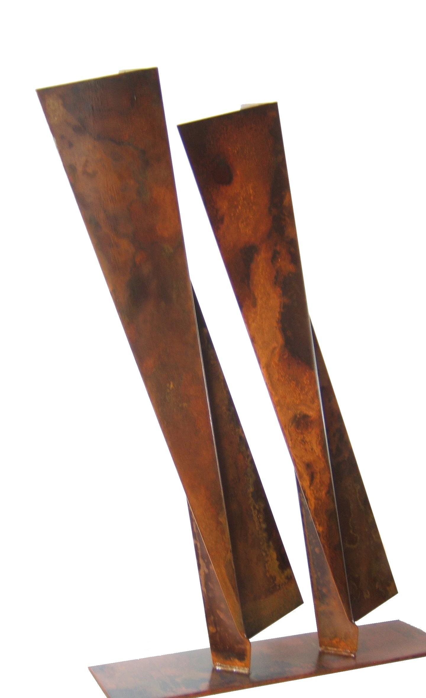 Ou "The Dance": deux bas stylisés, dansants, avec une jolie suggestion de mouvement. Le "à retenir" (en acier corten) a un aspect monumental avec les angles et les rythmes repliés. C’est un totem en acier corrodé que vous voudriez rencontrer en format colossal, s’il s’agit d’un prototype.